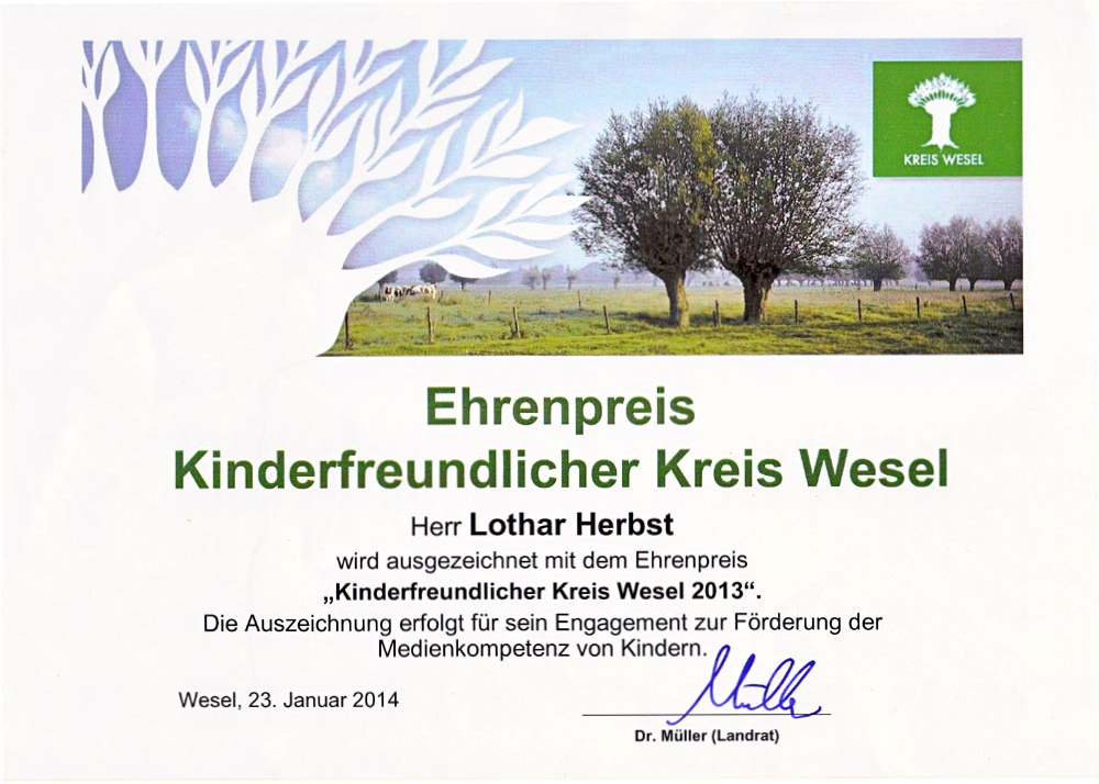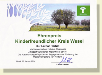 Ausgezeichnet mit den „Ehrenpreis Kinderfreundlicher Kreis Wesel“