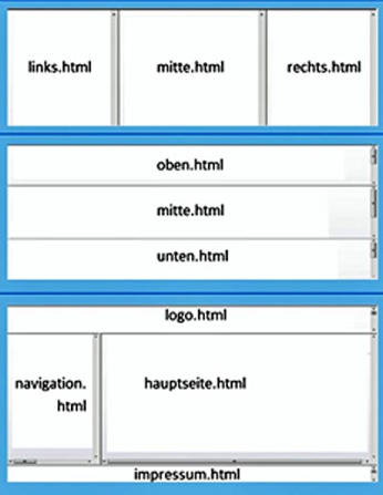 Damit man nicht einsam und allein an seinem Computer verweilen muss, und weil man mit anderen Menschen Kontakte knüpfen, oder E-Mail schreiben möchte, wurde das Internet für alle Menschen geschaltet. Natürlich kann man auch noch andere Dinge im Internet tun. Eigentlich war es ursprünglich einmal für das amerikanische Militär erfunden worden, aber dann wurde es doch der allgemeinen Menschheit zur Verfügung gestellt. So kann man auf der ganzen Welt Verbindungen mit anderen Menschen aufnehmen, egal ob sie in Afrika, Amerika, hier in Europa, oder sonst wo auf der Welt wohnen. Das weltweite Internet ist eine Verbindung zwischen den Computern in deinem Zuhause und den Internetversorgern, den sogenannten Providern. Provider: („Proweider”). Die Provider (zu deutsch „Anbieter“) regeln den gesamten Datenverkehr im Internet und verbinden die Computer untereinander. Dies geschieht entweder über die Telefonleitung, DSL-Leitung, Glasfaserkabel, oder über das Fernsehkabel. Browser: Der Browser („Brauser”) ist die Bedienoberfläche für das Internet und wird in den Programmiersprachen wie html, php, Java oder einer anderen Syntax (Computersprachen) geschrieben. Die Internet-Befehlszeile innerhalb des Browser lautet im Allgemeinen „http://www.Domain.de“. Domain steht für die eigentliche Internetadresse, die ihr Besuchen wollt. Gesicherte Webseiten beginnen immer mit https:// Das „https://“ oder http:// braucht ihr aber nicht immer mit eintippen! Mario weiß jetzt genau, wie man ins Internet kommt. Internetadresse in den Browser eintippen und auf die „Return-Taste“ (Enter-Taste) drücken, das war´s. Router: Der Router („Ruter”) steht bei euch Zuhause entweder im Keller, auf dem Schreibtisch oder auf einer Kommode innerhalb der Wohnung oder sonst wo, und verbindet alle Computergeräte im Haushalt miteinander. Dies geschieht meist über das LAN-Kabel, oder mittels WLAN (drahtlose Funkverbindung) mit dem Internet. Editor: Der Editor verwandelt die lesbare Programmiersprache in einen Maschinencode um, den sogenannten Bits und Bytes (das sind Nullen und Einsen), die wiederum nur der Computer versteht. Link: Es ist eine Verbindung (Verknüpfung) zu einer anderen Stelle hin, meist zu anderen Internetseiten (Webseiten), es kann aber auch innerhalb der gleichen Webseite sein und so zu einer Textpassage verbinden. Man erkennt einen Link auch daran, dass er meist in einer anderen Farbe dargestellt wird und unterstrichen ist. Das ist aber nicht immer der Fall, es richtet sich danach, mit welchem Editor-Programm die Webseite geschrieben wurde und wie der Programmierer es eingestellt hat. Hier ein paar Beispiele, wie ein Link funktioniert. Wenn ihr im Internet seit, klickt einfach mit der linken Maustaste auf einen Link, dann macht sich ein neues Bildschirmfenster im Browser auf. Wenn ihr unterstrichene, meist farblich anders dargestellte Schrift seht, handelt es sich um einen Link. Beispiele: www.blinde-kuh.de, www.KidsWorld.nurklicken.de, oder www.mauswiesel.bildung.hessen.de Wenn ihr das neue geöffnete Fenster wieder schließen möchtet, einfach oben rechts auf das Kreuzchen klicken, und ihr seid wieder auf eurer Startseite. Anker-Link: Klickt ihr z.B. auf einen Anker-Link werdet ihr auf einen zuvor gesetzten Anker (man sagt auch Sprungadresse) verlinkt. Das macht man vor allem auf sehr großen Webseiten oder Dokumentationen, damit man nicht mit der Maus mühselig hin und her herumscrollen muss. Scrollen bedeutet, mit dem Mausrad die Webseite hoch- oder runterschieben.. Was ist eine Website? Eine Website („Webseit“), zu deutsch Webseite, ist eine Internetpräsenz eines Anbieters und wird auch Domain genannt. Meist werden sie geschäftlich genutzt, um eine Ware oder diverse Dienstleistungen anzubieten. Natürlich kann man auch privat im Internet auftreten, um seinen Freundinnen und Freunden von sich zu erzählen. Aber auch hier gilt, wenn schon öffentlich im Internet auftreten, dann gebt nicht zu viele Persönliche Daten bekannt. Denkt immer daran, dass jeder der von eurer Website erfährt, auch alles für sich nutzen kann. Fälschlicherweise wird bei einer Website immer wieder von einer Homepage („Hompäitsch“), zu deutsch Heimseite gesprochen. Merke: Eine Website umschreibt immer den gesamten Internetauftritt, eine Homepage beschreibt immer die erste Start- oder Heimseite dieser gesamten Website oder auch Internetpräsenz genannt! Was ist eine Frame? Unter einer Frame („Fräim“), zu deutsch Rahmen, versteht man eine Aufteilung der Webseitenoberfläche unterteilt in feste Abschnitte, die mit Informationen gefüllt werden. Somit ist das Gesamtbild auf allen Unterseiten immer gleich aufgeteilt. Oben im Kopf wäre immer die Überschrift oder das LOGO einer Firma zu sehen, während sich in der Frame-Mitte verschiedene Daten oder Bilder von Seite zu Seite verändern könnten. Links wäre dann die Navigation (Menü), um zwischen den Seiten zu Blättern. Beispiel-Frame- Unterteilungen Webseitenbeispiel 1 Links – Mitte- Rechts Webseitenbeispiel 2 Oben - Mitte - Unten Webseitenbeispiel 3 Oben - Links – Mitte - Unten Was ist eine iFrame? Unter einer iFrame (”Eifräim”) versteht man eine Rahmensetzung innerhalb der eigenen Webseite, in der eine fremde externe Webseite eingeblendet werden kann.